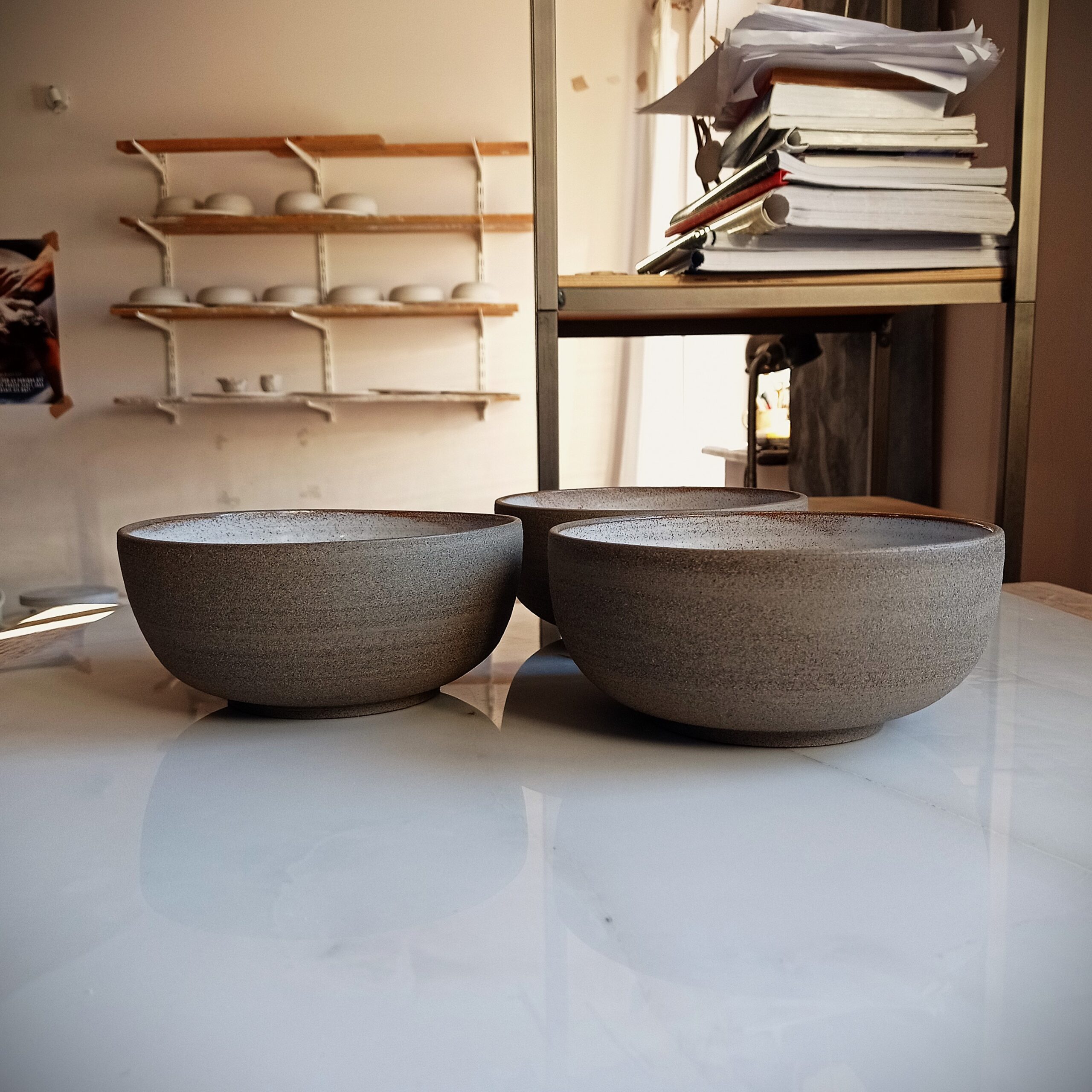 This bowl is made of a stoneware. It is glazed glossy inside. Its inside texture is smooth. Dish was created on a throwing wheel. As a result of this type of production, pieces are very similar, but never the same – they may vary in dimensions, details in decoration or shape. All tableware foots’ are polished.