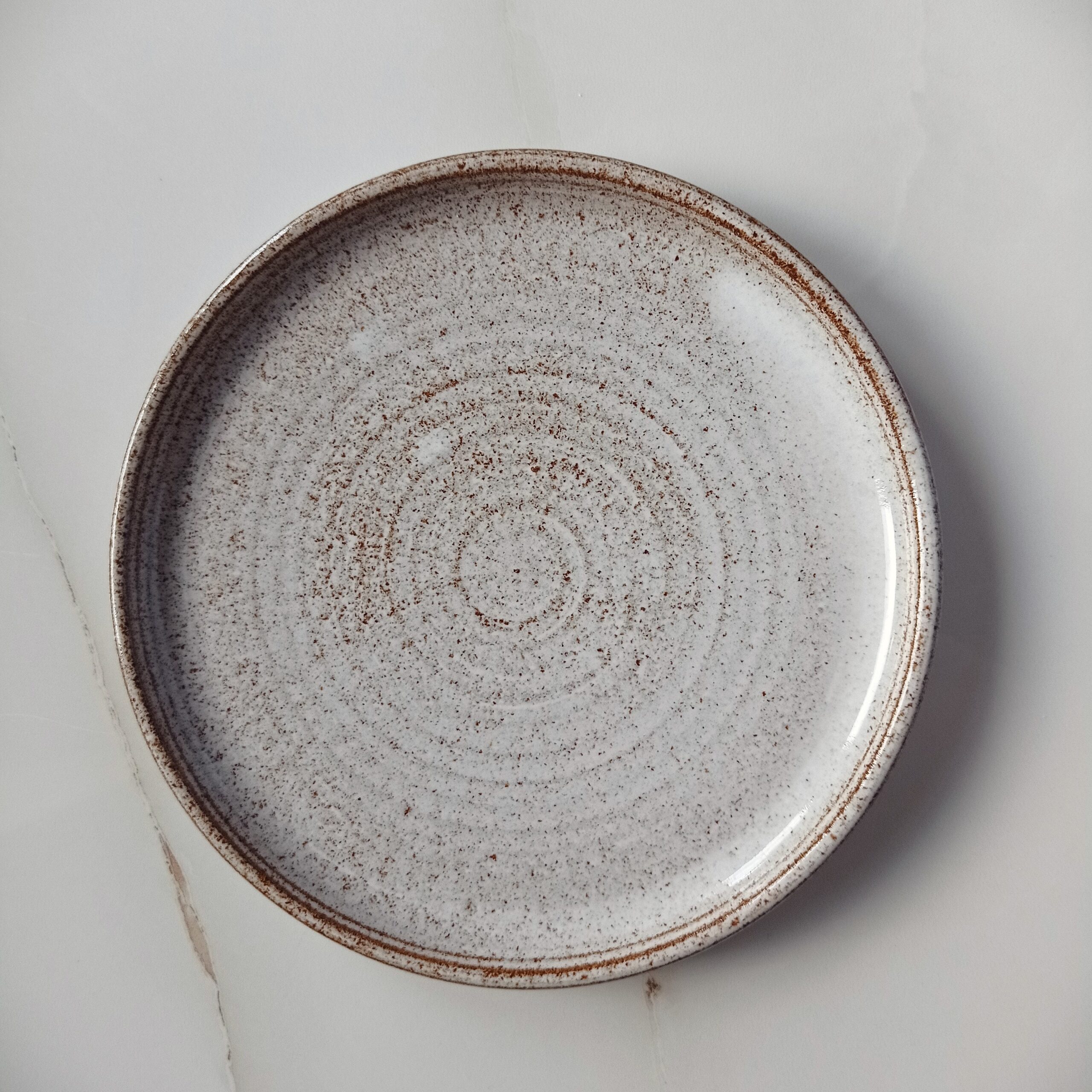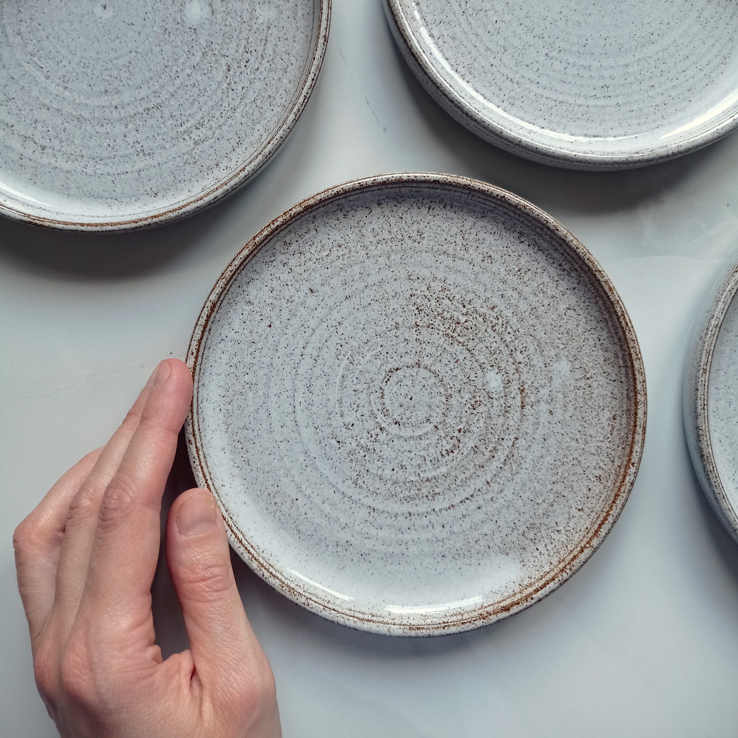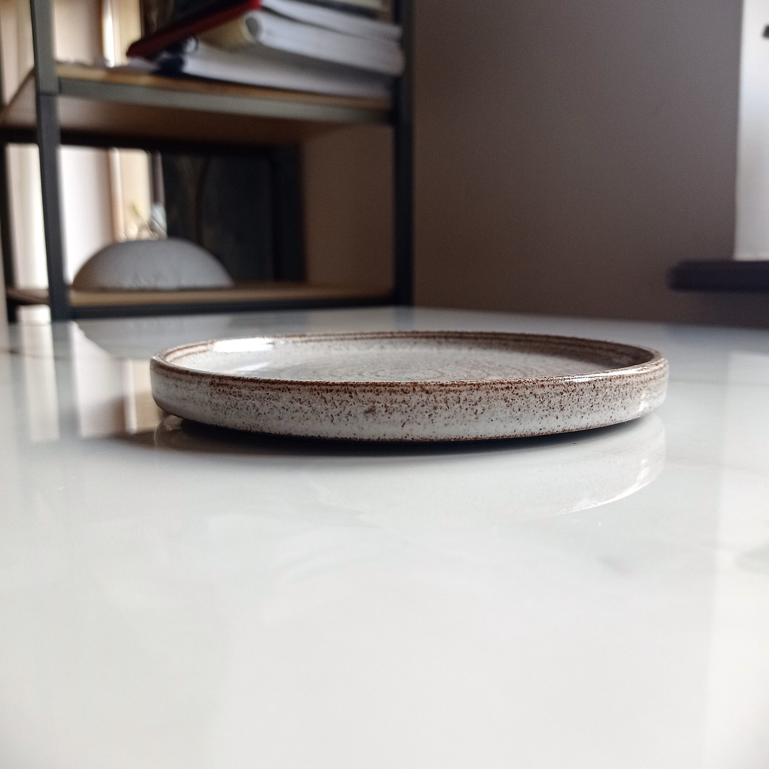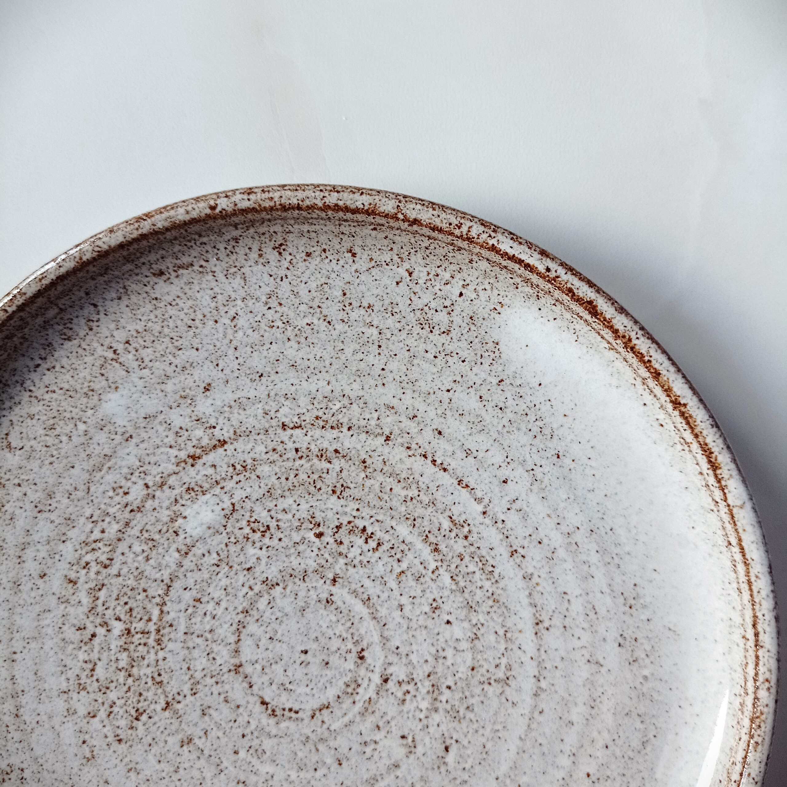 This plate is made of a stoneware. It is glazed glossy inside. Inside texture is smooth. Dish was created on a throwing wheel. As a result of a type of production, pieces are very similar, but never the same, they may vary in dimensions, details in decoration or shape. All tableware foots’ are polished.